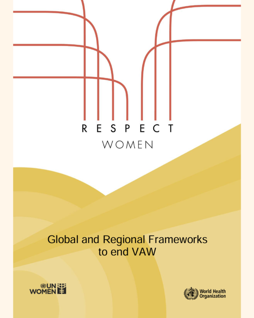 Opierając się na zasadach szacunku i równości oraz wnioskach wyciągniętych z wyników badań naukowych dotyczących skutecznych metod zapobiegania przemocy i jej nawrotom, WHO i UN Women, we współpracy z dziesięcioma innymi agencjami ONZ, opracowały dokument „RESPECT Women: Zapobieganie przemocy wobec kobiet”. Publikacja stanowi kompleksowe ramy dla osób odpowiedzialnych za tworzenie i wdrażanie polityk publicznych na temat tego, w jakich sposób projektować, planować, wdrażać, monitorować i oceniać interwencje i programy dotyczących zapobiegania przemocy wobec kobiet i reagowania na nią.